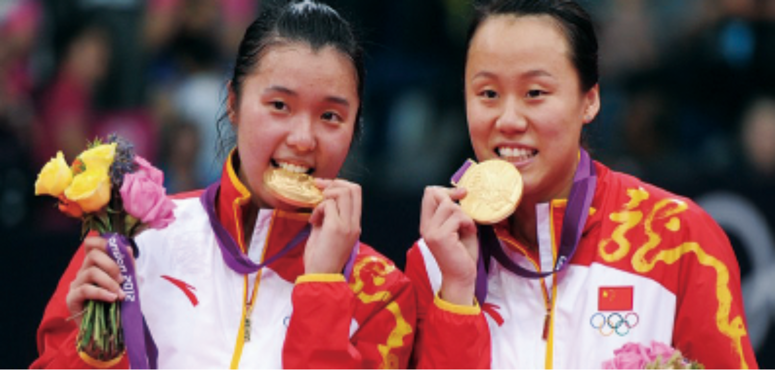 公司员工田卿(左)与队友赵云蕾搭档获得伦敦奥运会羽毛球女子双打冠军。