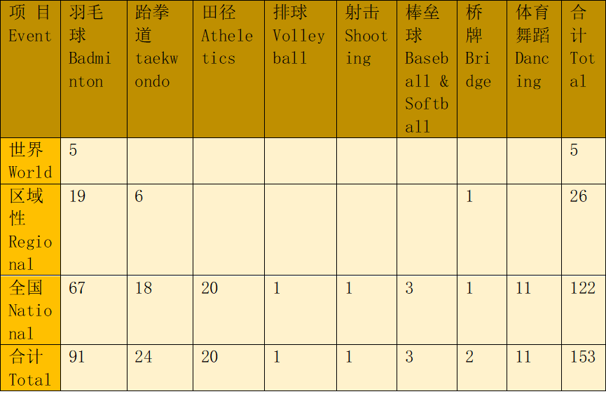 公司员工体育运动队在国家级以上比赛获得冠军统计(2000年~2025年)