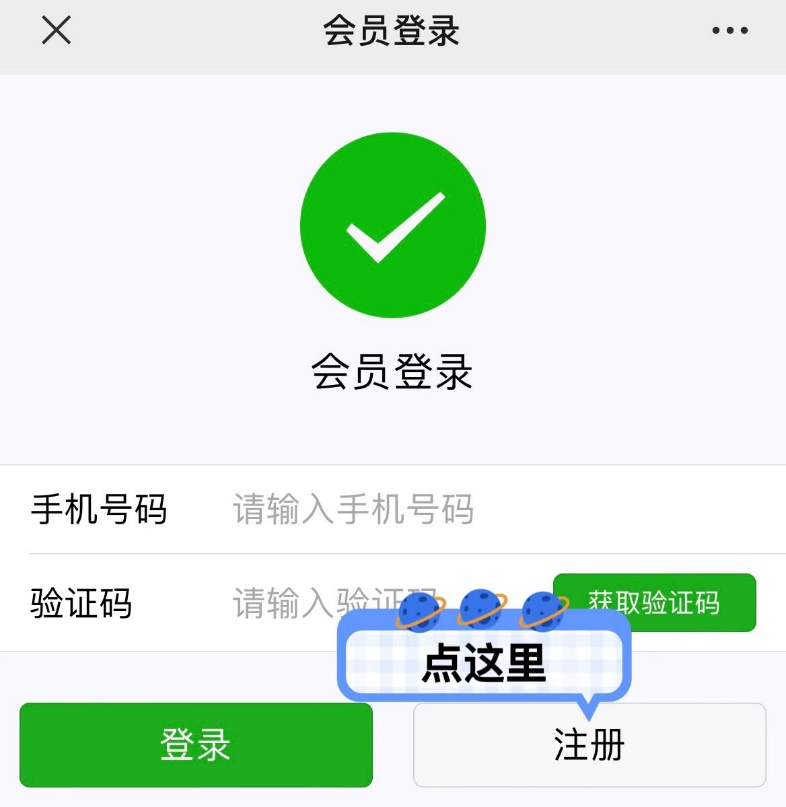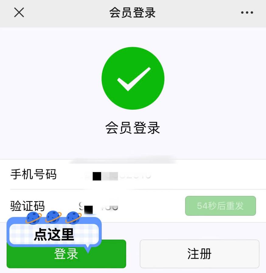 5.返回“会员登录”界面,输入手机号获取验证码→点击【登录】