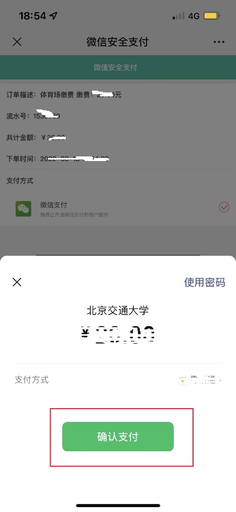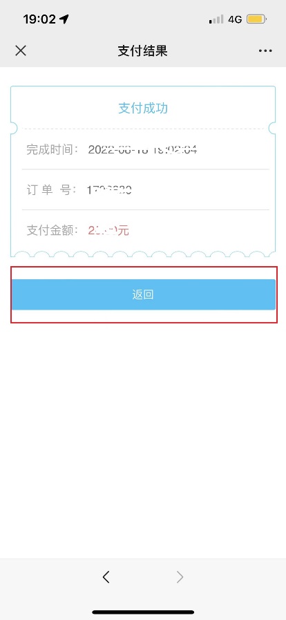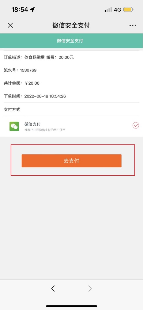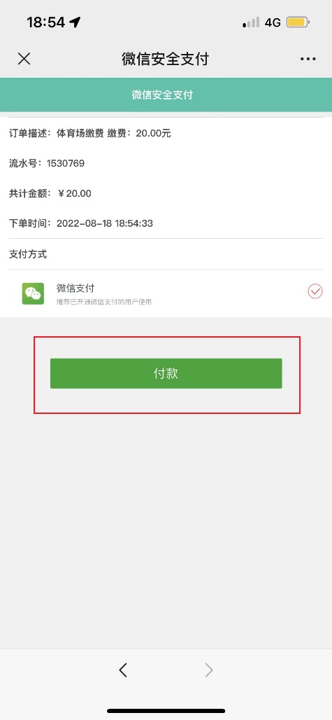 5. 点击橙色【去支付】后,跳转至【付款】页面