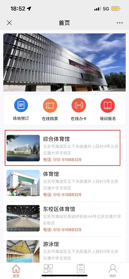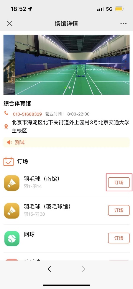 1. 选择需要预订的体育场馆,进入场馆界面后选择运动项目,点击【订场】