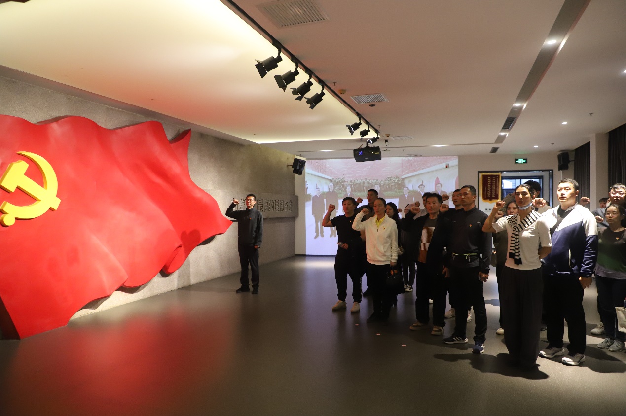 在参观过程中,党员同志们还观看了影片,与李大钊同志展开了一场“跨越时空”的对话,让党员们再次感受到建党先驱们“为中国人民谋幸福,为中华民族谋复兴”的坚定信念。在参观的最后,支委陈永发同志带领党员同志们重温入党誓词,在庄严的宣誓中再一次感受中国共产党砥砺前行的初心。