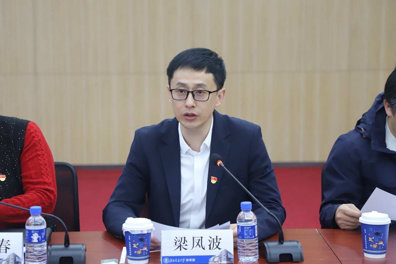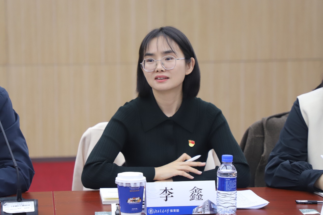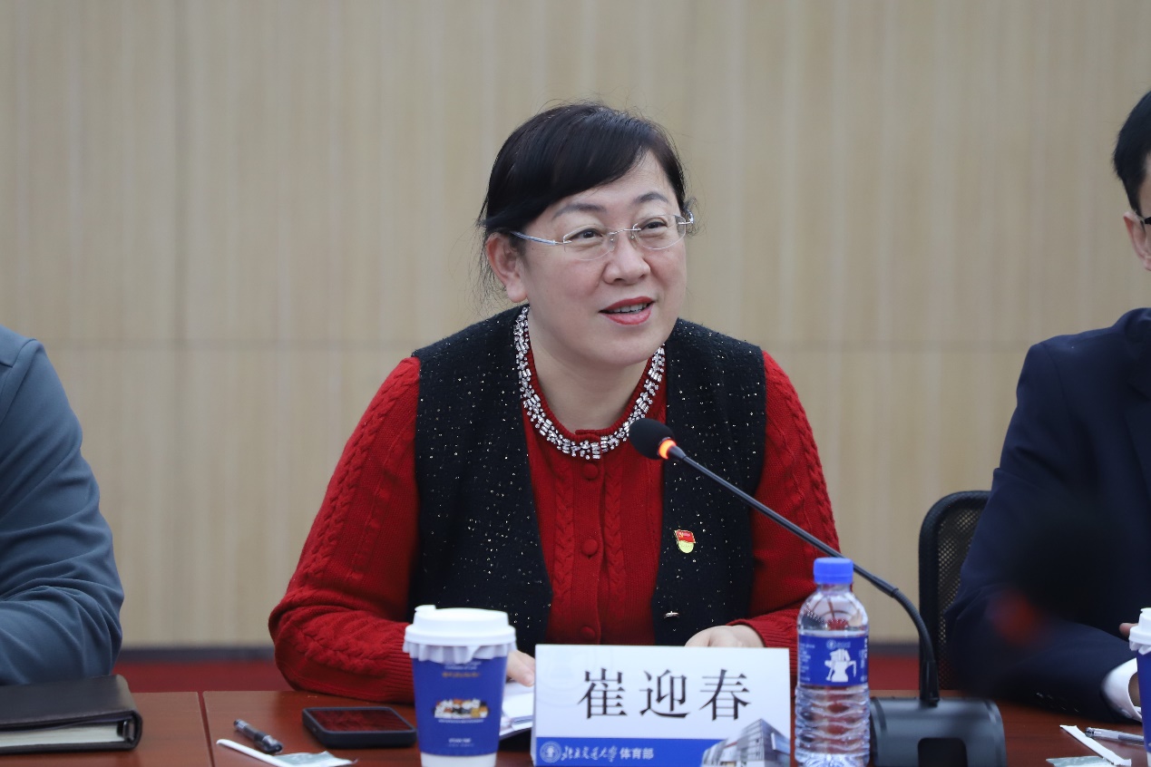 活动伊始,崔迎春对郑旺全一行的到来表示热烈欢迎,对人教社一直以来对交大体育工作的支持表示感谢。她介绍了体育部的体育教学、群众体育、员工体测、场馆管理以及党群等相关工作,她表示人民教育出版社作为教育部所属专业出版机构,始终立足基础教育主阵地,以权威系统的国家教材为核心,推动课程改革与传统文化传承,将社会主义核心价值观融入教材编研,服务立德树人根本任务,为培养德智体美劳全面发展的时代新人提供坚实支撑。希望人教社能够传授经验,促进交大体育育人工作水平更进一步。
