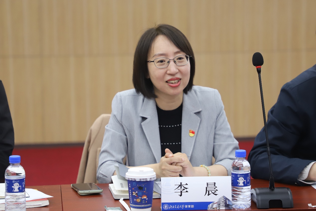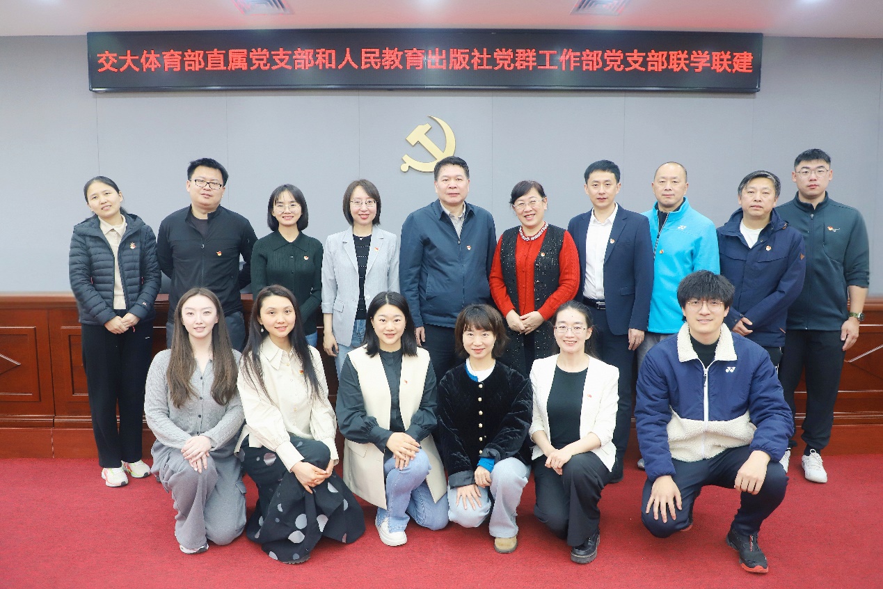 李晨对体育部为此次联学联建所做的精心安排和对人教社体育活动的支持表达衷心感谢。她介绍党群工作部负责统筹全社党建工作,组织党员开展理论学习与主题教育,推动党建与教材编研深度融合,强化党风廉政建设,引领群团组织建设,促进红色文化与教育出版有机衔接,为落实立德树人根本任务提供政治保障。她表示交大体育部通过营造体育文化氛围,帮助员工提高身体素质、疏解身心压力、锤炼意志品质、促进团队建设,充分彰显了体育的育人功能。希望双方能够深化合作,发挥优势,资源共享,形成合力,共同促进体育育人和书香育人的工作提示。