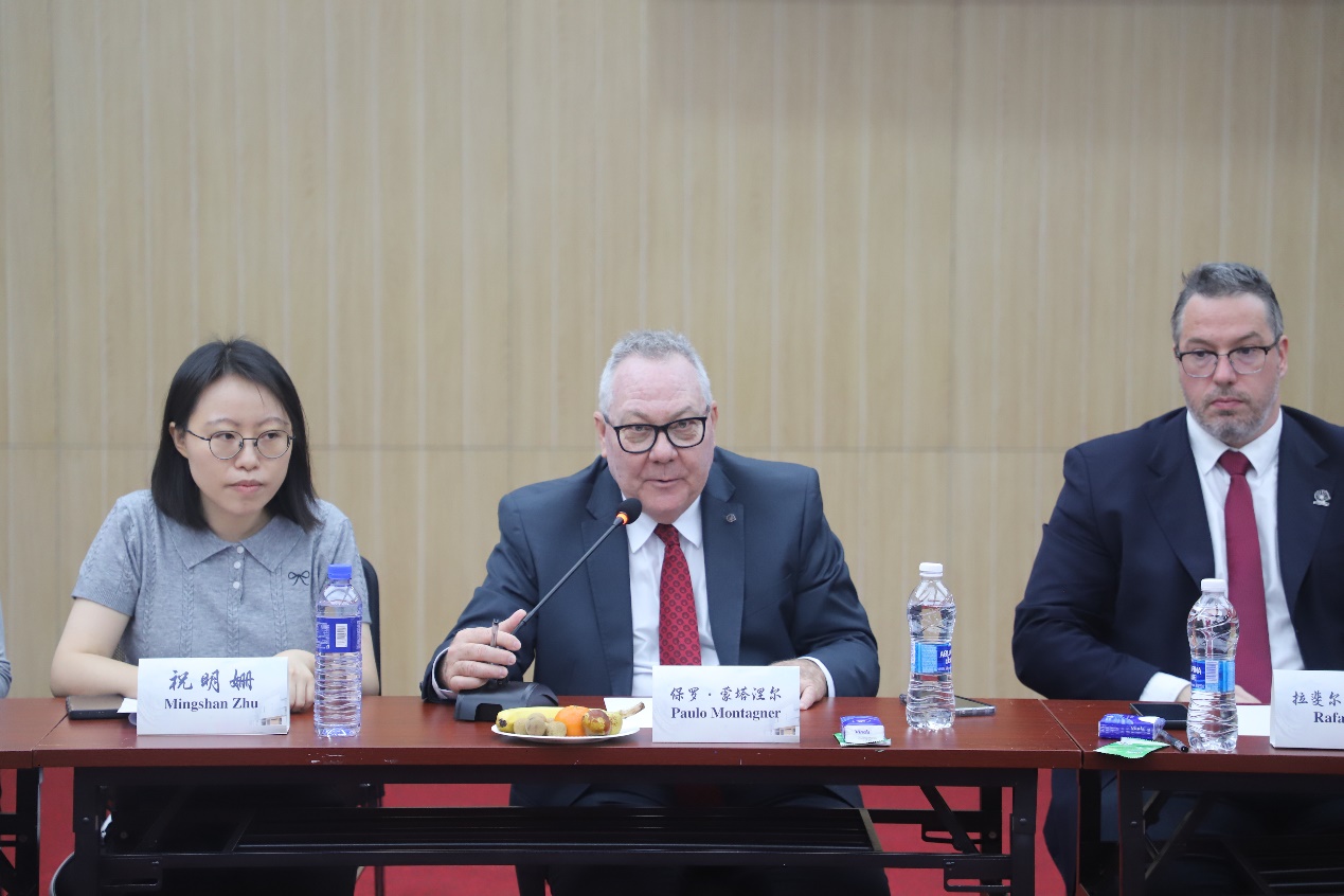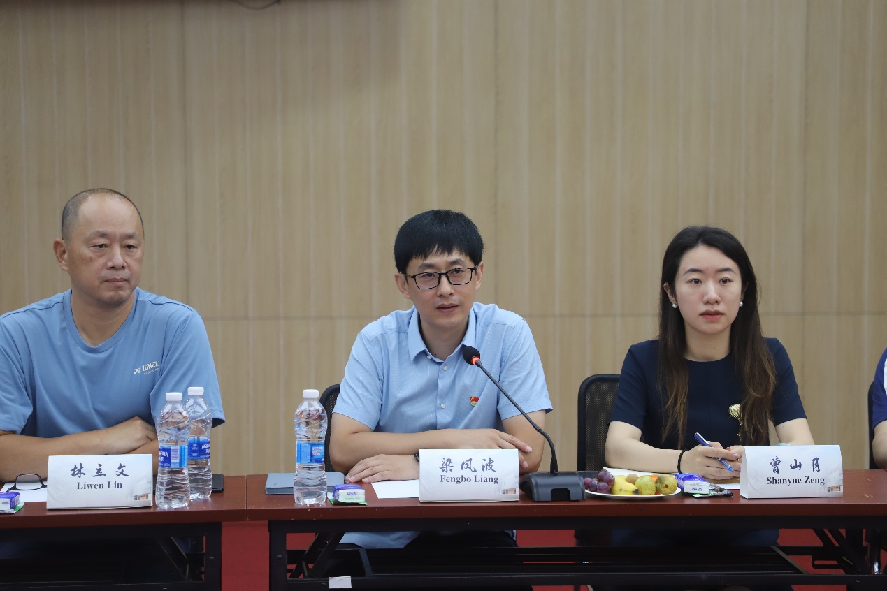 参观结束后,保罗·蒙塔涅尔董事长一行与体育部书记梁凤波及相关人员举行了座谈交流。座谈会上,双方就体育教育、体育创新、联合培养等方面展开了深度交流。双方表示希望以此次访问为契机,加强两校在体育方面的交流合作,聚焦两校体育优势项目,形成资源互补,推动两校体育工作在运动队建设、体育科研创新等领域实现更高质量发展。