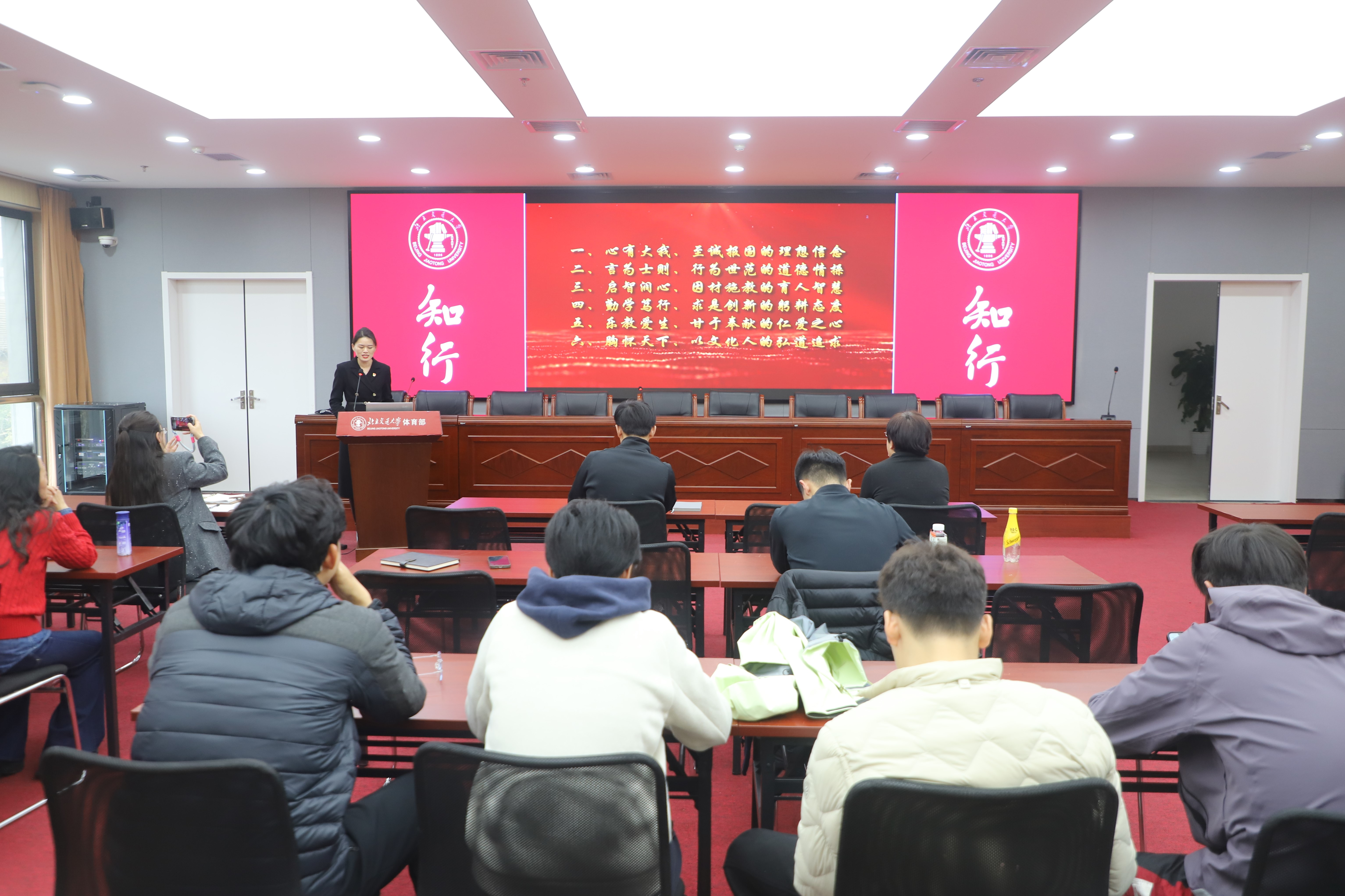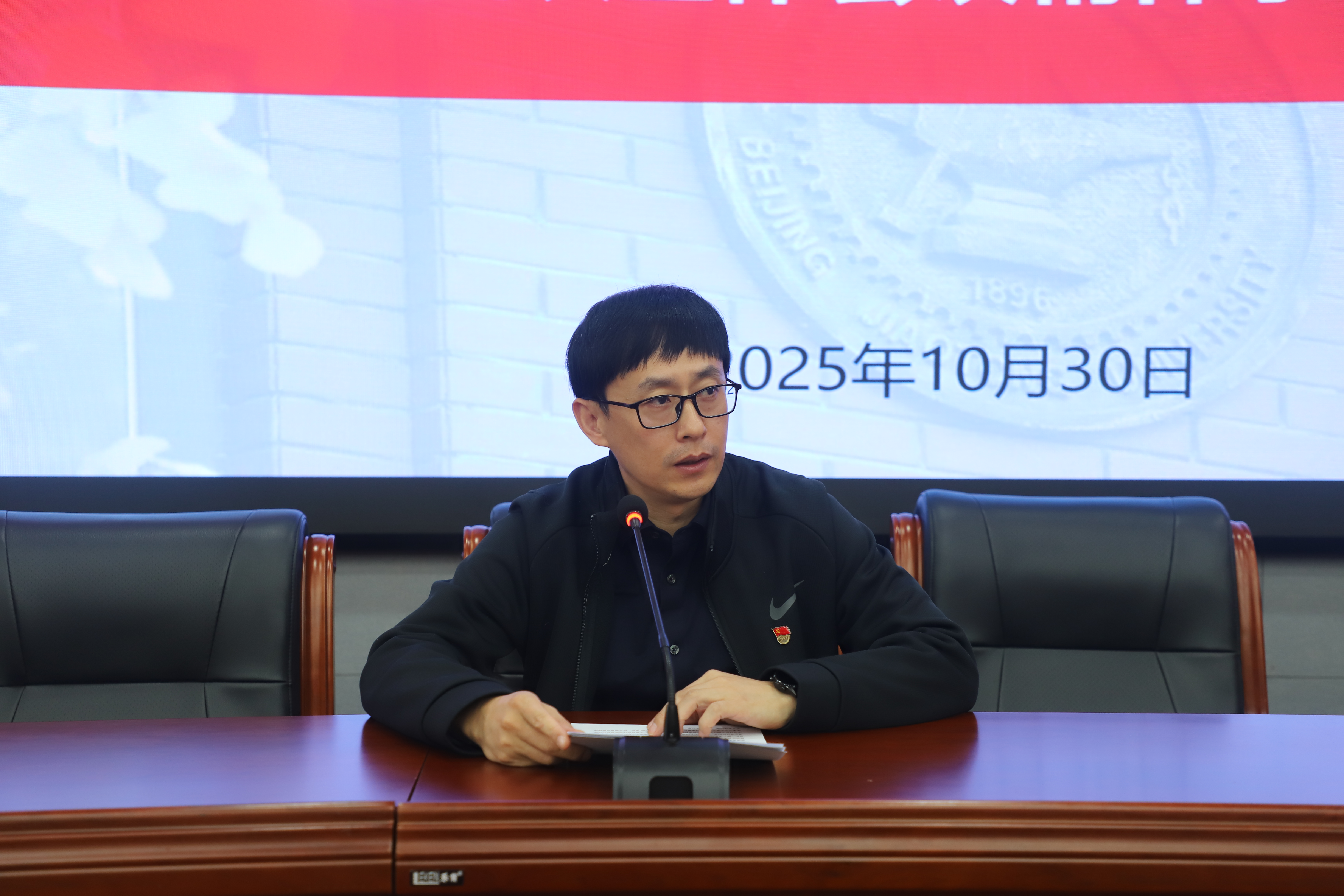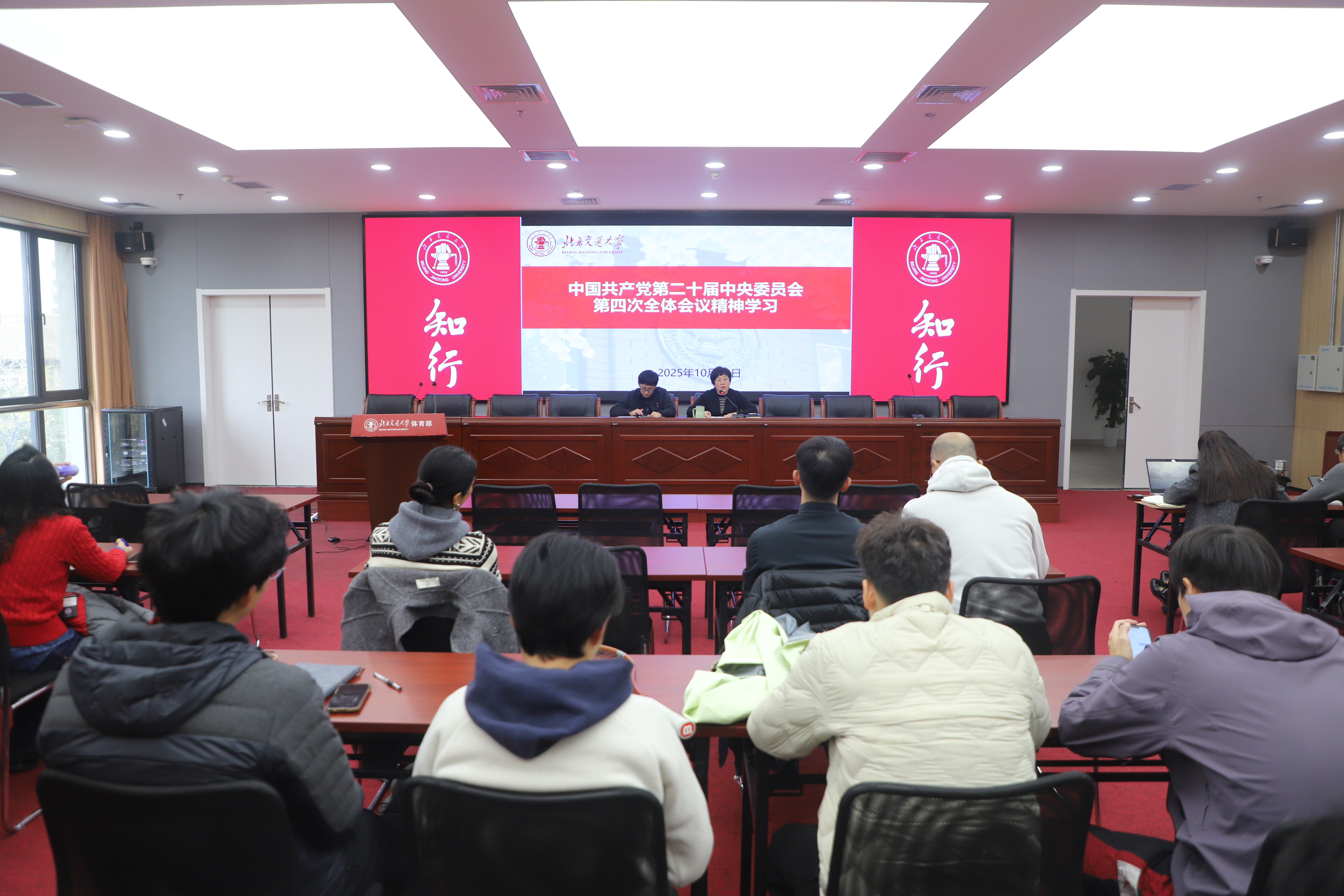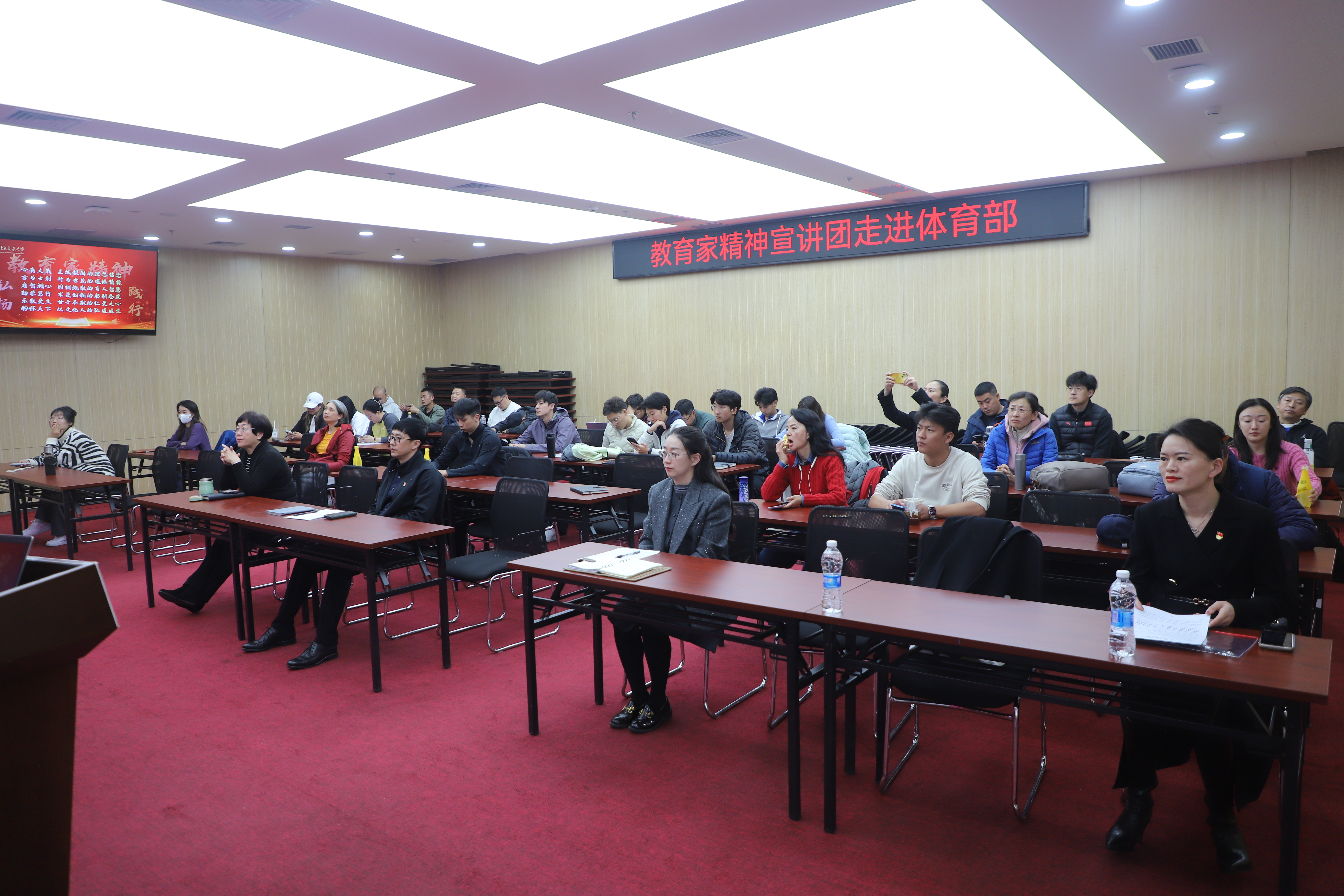 2025年10月30日,体育部直属党支部在综合体育馆多媒体教室组织全体教师召开专题学习会,深入学习领会党的二十届四中全会精神,旨在将思想和行动统一到中央决策部署上来,随后邀请公司教育家精神宣讲团两位成员开展了宣讲。